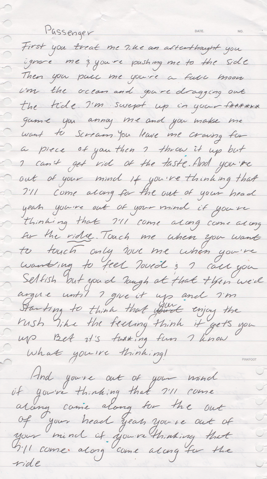 Passenger - Digital Download + Hand Written Lyric Sheet
